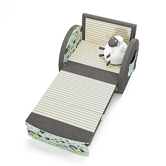 Поставила сыну в комнату. Очень нравится дизайн, как раз для мальчика. Ребенку нравится. Спит отлично, раскладывает сам без проблем. Тахта компактная, это очень важно, ведь места и так немного.