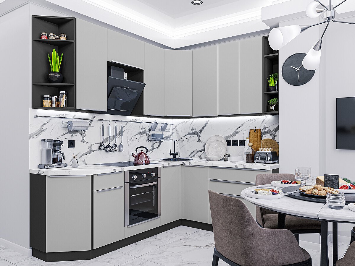 Фьюжн-04 (2340х2200/1800х600) Graphite/Silky Light Grey совмещает благородную привлекательную эстетику с практичностью и хорошим функционалом. Продуманный дизайн уместно дополнит созданный интерьер и органично впишется в любое помещение.