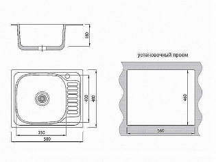 Мойка врезная 764218/0,6 1Ч1К (правая)