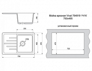 Мойка врезная Vivat 754919 1Ч1К